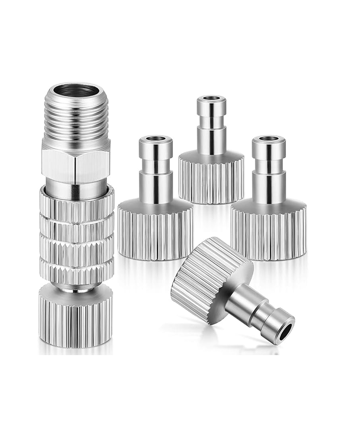 These quick-release connectors let you swap between multiple airbrushes instantly without having to unscrew hoses or release air pressure, a total game-changer when you need to switch tools fast. They automatically cut off airflow when disconnected, so you're not wasting air or making a mess between changes.