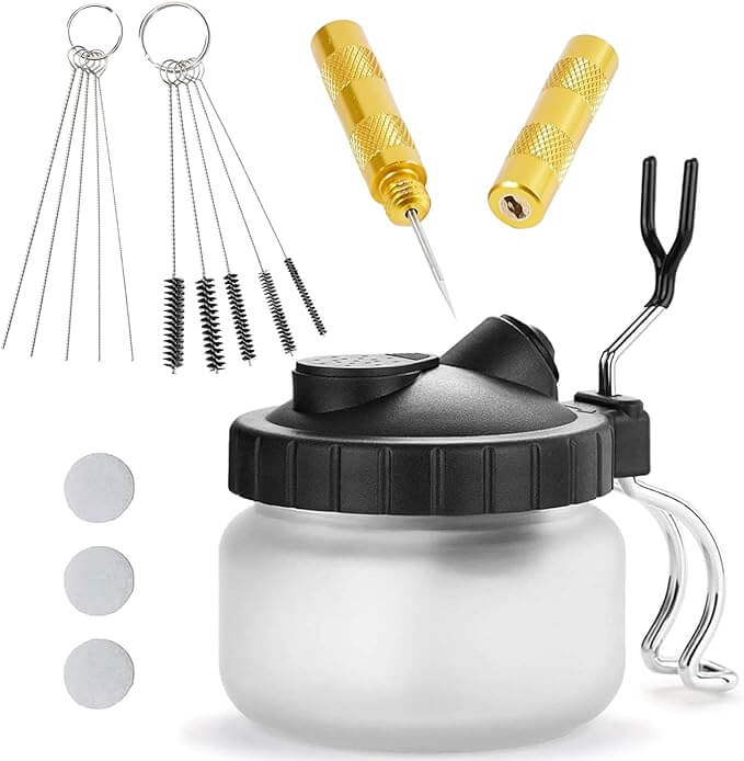 Keeping your airbrush clean is essential for consistent performance, which is why we stock this 16-piece cleaning kit for our artists. The variety of needle sizes and brushes means you can thoroughly clean every part of your airbrush without damaging delicate components. This kit handles everything from routine maintenance between colors to deep cleaning after events, letting our team focus on creating art instead of struggling with clogged equipment.